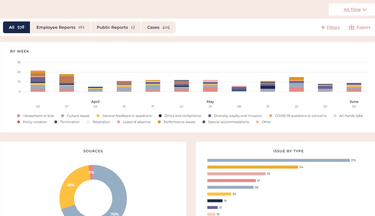 Customize employee-facing landing pages, build your own reporting flows, and control who gets access to specific cases and data. AllVoices offers the easiest, most flexible customization experience.